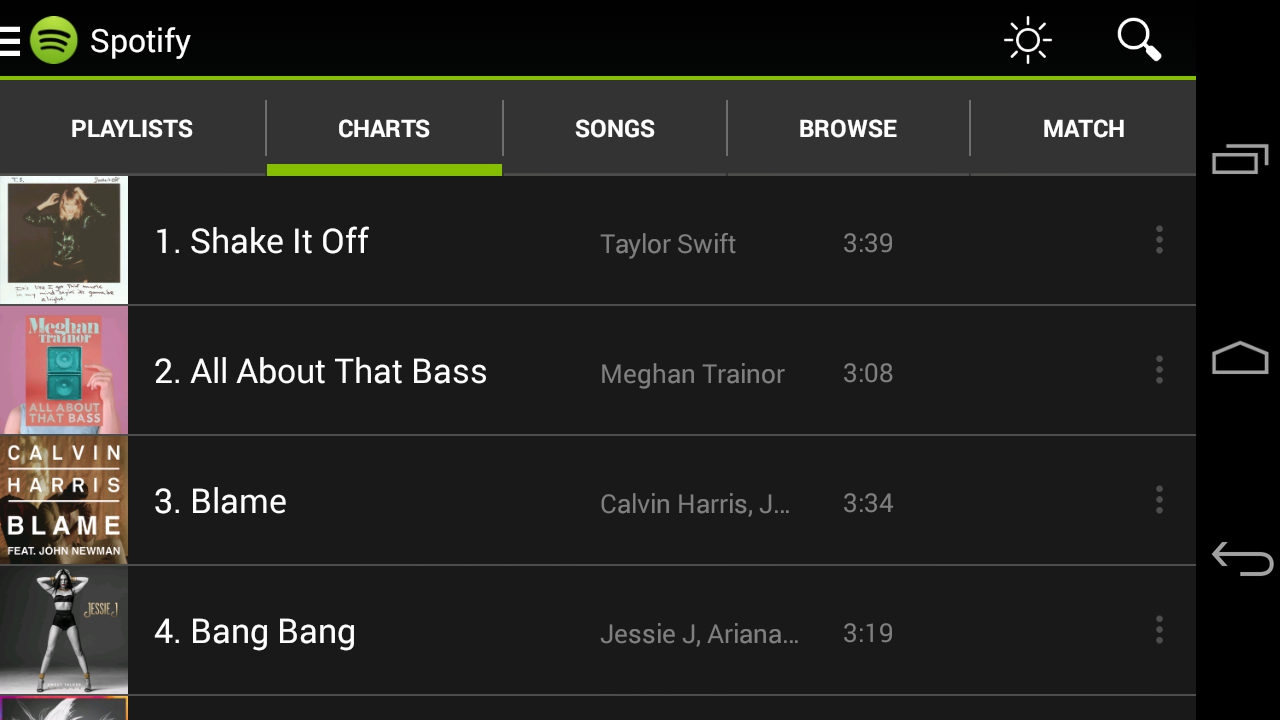 My favorite thing about using Spotify, however, is the Match feature. While you have a song going, on the other side of the table you can que up your next song using the Match section in Spotify. Match will list up to 20 songs that matches the vibe of your current song, allowing you to either select from a classic follow up tune or try out a new song that Spotify suggests.