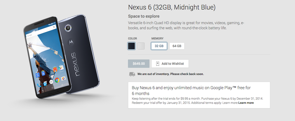 As a reminder, the Nexus 6 is available in either Midnight Blue or Cloud White, with the 32GB variants of either color retailing for $649. The 64GB variants are $699.