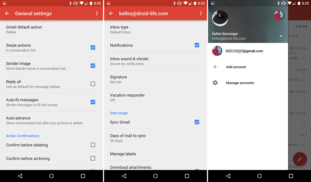 The rest of the app is mostly the same, in terms of settings, notifications, and swiping. I didn’t notice any new settings or options in notifications, plus the swipe-to-archive/delete is the same. You still won’t find swipes across messages that can do multiple actions, like you will in Google’s new Inbox app.