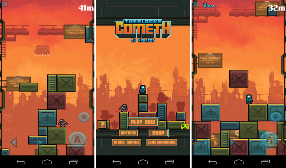 A new game from Noodlecake Studios called The Blocks Cometh released onto Google Play today, priced at just $1.99. The game, which is placed around the destruction of a random world, has a protagonist attempting to climb blocks as high as he can without being crushed or falling to his death.