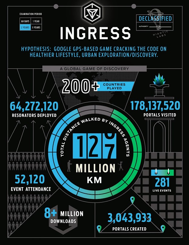 The augmented reality game, a product of Google’s Niantic Labs, has not seen a major update since February, but the developers have not forgotten about its many devotees. In celebration of Ingress’s 2-year anniversary, they have detailed a few fascinating statistics in an infographic and are starting a new monthly event series for beginning players.