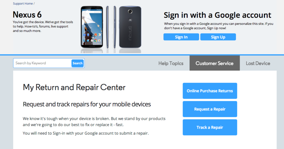 At first, it was unclear if Motorola was going to offer the warranty program for the Nexus 6. Thankfully, it is now official and information on how to repair your device through Motorola is available on its site.