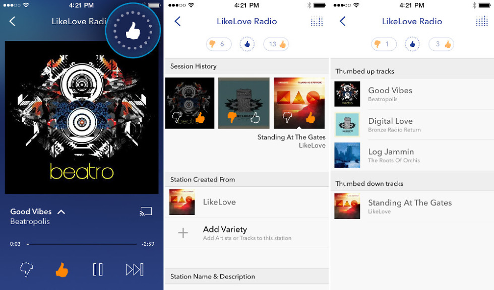 The updated UI introduces listeners to a “fresh, evolved design” that will lay the foundation for future updates, but also includes new transitions and animations to drive a “sense of place into the listening experience.” Yes, that’s apparently a thing. There is a new Personalization Icon as well, which gives users a “more holistic view” of their stations, along with a comprehensive thumb history and an un-thumbing capability. Finally, users will now have easier access to artist information, thanks to “swipe and tap” navigation.