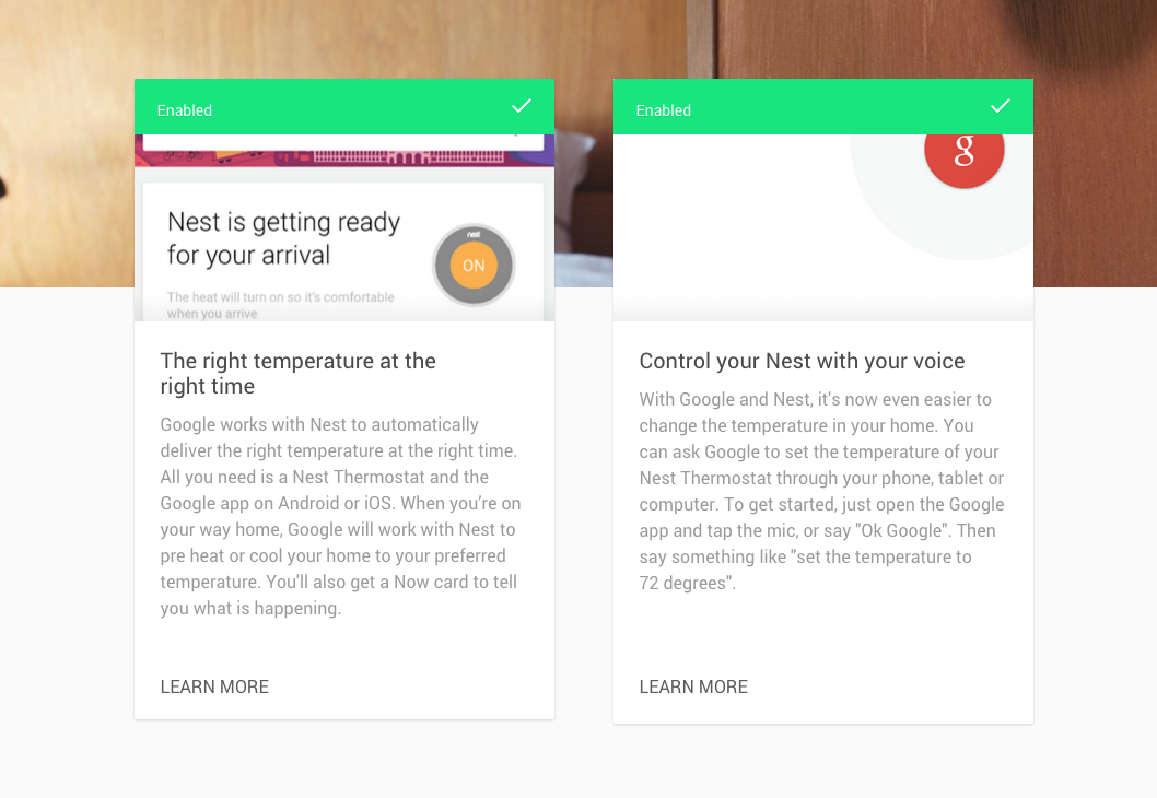 As we mentioned on Friday, there are two options. One allows you to do simple things like set the temperature or change your Nest to “away.” The other, involves a much more automated system that tries to intelligently set your Nest to preferred temperature should Google notice that you are on your way home.