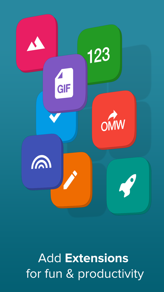 - Extensions – GIF Keyboard, Numbers Row, Editor, Shortcuts – omw > on my way, Launcher, Rainbow Pops, Invisible Keyboard