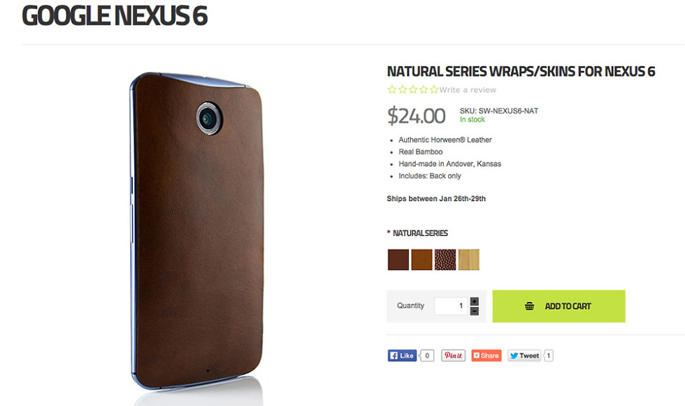 What if you want a wood or leather Nexus 6, though? Slickwraps may have an option that will get you close to a Moto Maker-made Nexus 6.