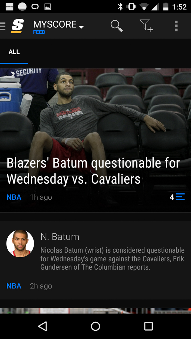 The only thing this app is missing is cloud profile support, so that if you change phones, you don’t have to fully setup all of your favorites, notifications, etc. I would hope that they are considering it, but either way, this is the sports app you need to be using.