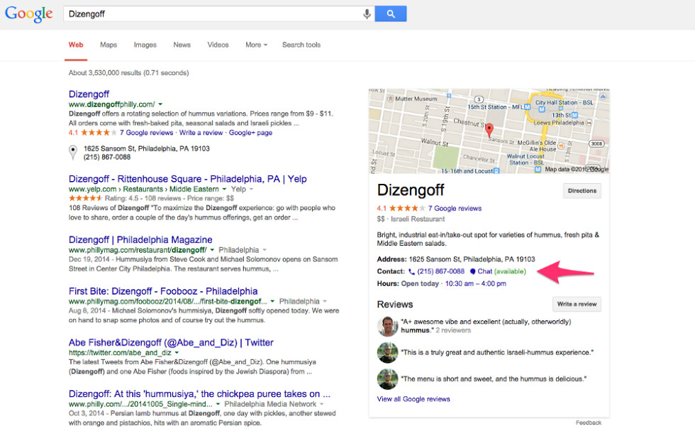 Google has confirmed to TechCrunch that the company is currently testing a new chat service for business listings right inside of Google Search results. As an example, if you were to search for a restaurant, you could ask an employee at the restaurant if they were busy or featured a vegan menu, then receive an answer in real time.