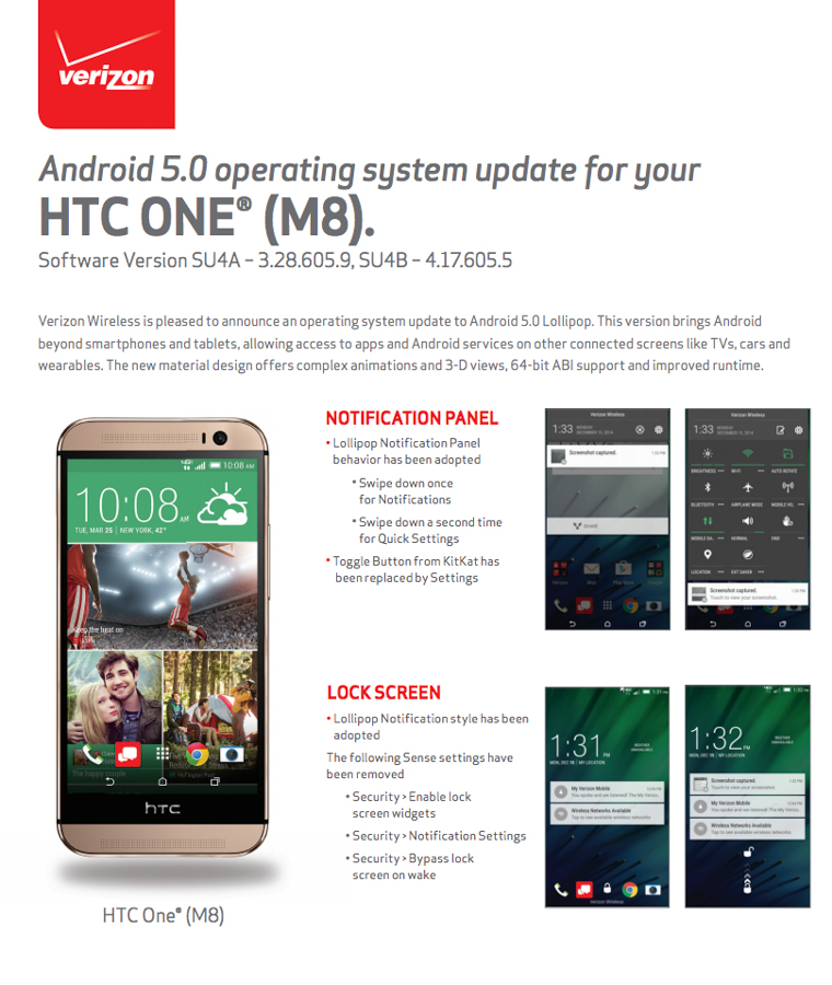 Last night, just as we signed off, Verizon began pushing Android 5.0 Lollipop to its variant of the HTC One M8. HTC said that they were expecting it by the first week of March, so I’d say they nailed that timeline. Good job, HTC. By our tally, the AT&T variant is the only One M8 that still has not received Lollipop.