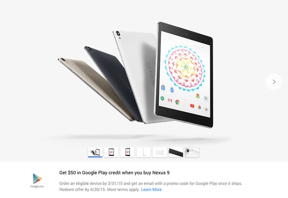 From today through March 31, should you buy a Nexus 6, Nexus 9, or an Android Wear device through the new Google Store, Google will hand you $50 in Google Play credit to spend as you please. If you choose the Sony Smartwatch 3, you will save another $50, as the GPS-equipped watch’s price has been slashed from $249 to $199.
