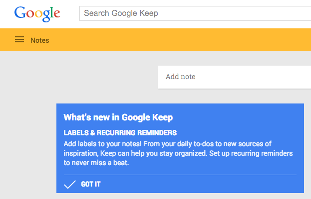 Google Keep on desktop received two very handy new features today that we can only hope come to the Android app before long. A refresh of Keep on the web returned a pop-up that tells users of the arrival of labels and recurring reminders. Yes, you can finally organize your Keep account(s).
