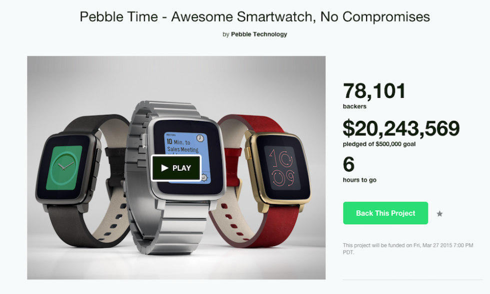 The Pebble Time, Pebble’s next iteration of the company’s smartwatch, has reached its final day on Kickstarter. Having surpassed $20 million in funds, it has become Kickstarter’s #1 backed project. With that said, you only have a few hours remaining to back the project and receive a Kickstarter Edition of the device.