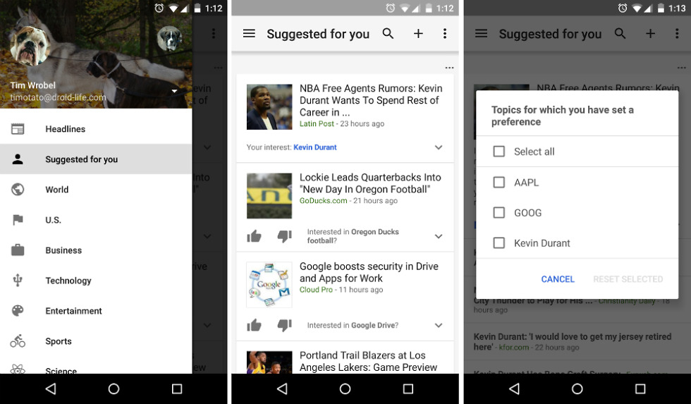 As for stories it will suggest, it seems to show stories related to things you have searched for before. For example, on my feed, I get a lot of Google, Kevin Durant, and Android-related stories. If you search for a lot of movies, Barbie dolls, and Godzilla, then you can expect to see suggested stories covering those topics.