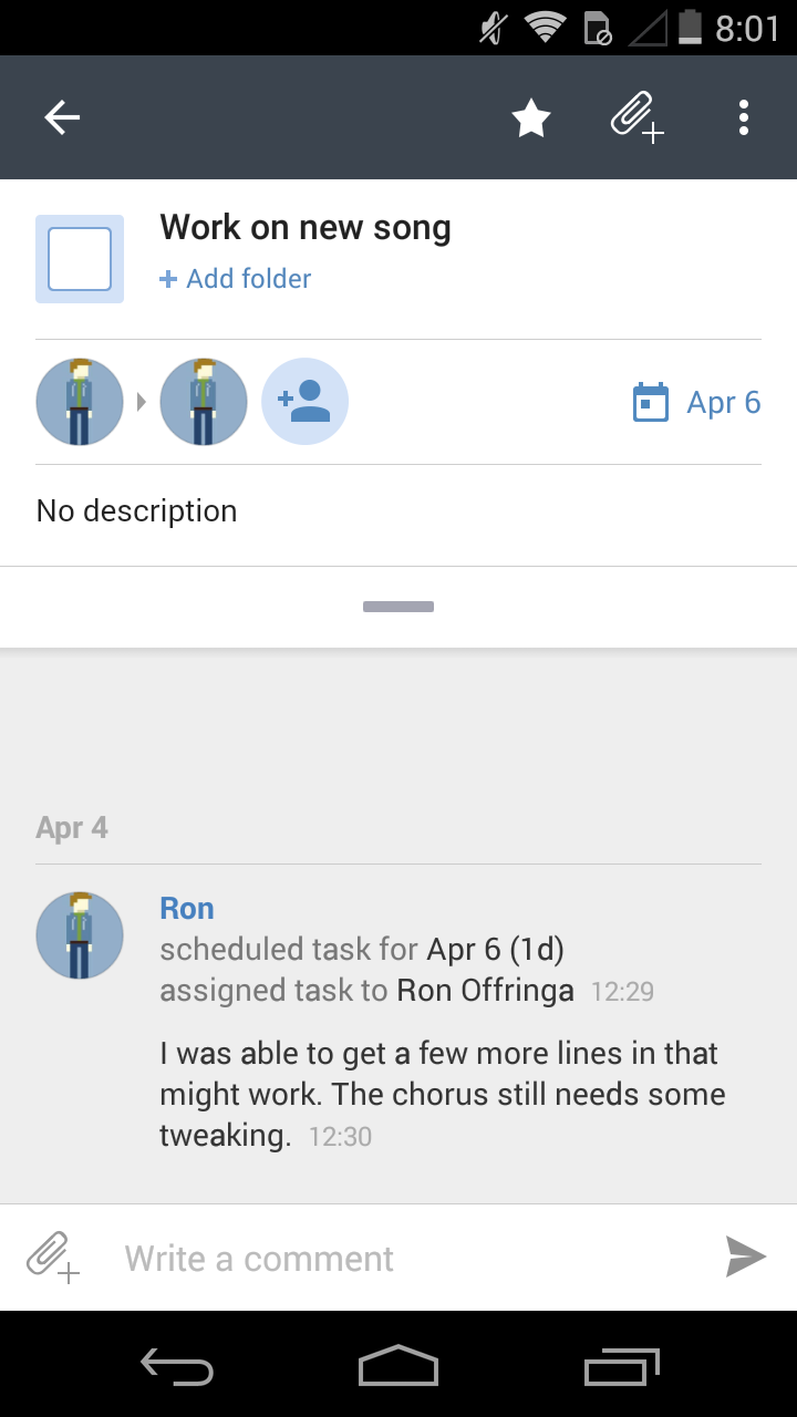 Like every other to-do list app out there you can add tasks and set due dates for those tasks. Because of Wrike’s built in collaboration features you can also do things like assign tasks to people. People can then add comments to the task as it is worked on. While I don’t have a lot of tasks that demand collaboration in my personal life, I could see this being powerful, especially since it’s free for small teams. Personally, I like being able to add comments to my own tasks as I work on them.