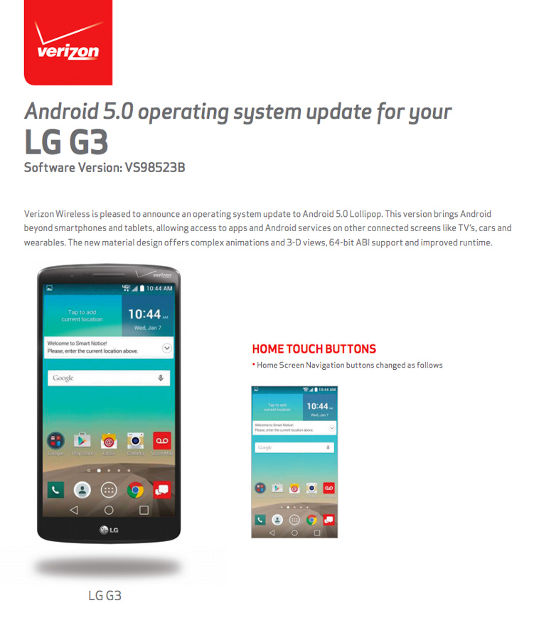 The LG G3 on Verizon is getting Lollipop! It is! Look, we have an official document saying as much. It’s also dated today! It doesn’t say April 1!