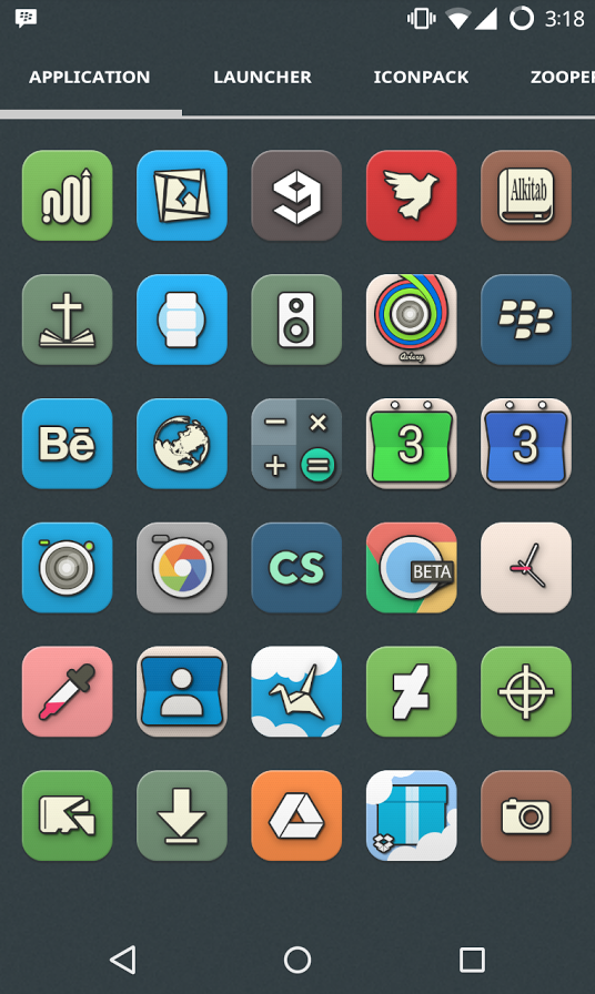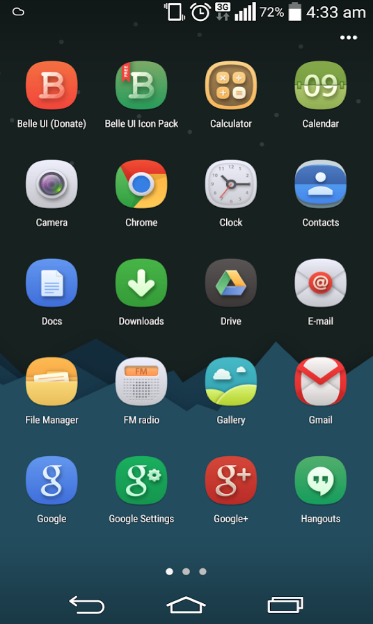 There are both free and “donate” versions of Belle, with each featuring over 1,300+ icons, a bunch of custom wallpapers, and of course, support for your favorite launchers. The icons are rounded, have subtle shadows that highlight depth, and a color range that is neither Easter nor dark cave – it’s somewhere in the middle. The colors all stay pretty true to the apps they represent, which makes for one of the most versatile packs you will find.