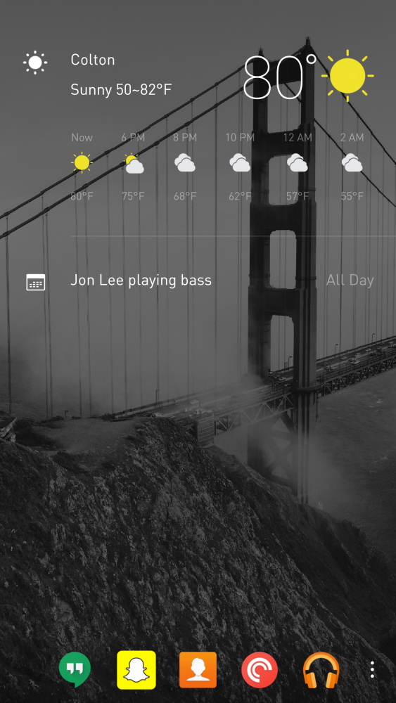 Snaplock by Wandou Labs, at this moment, is my favorite lock screen replacement. The default lock screen shows the time, date, battery life, and a camera shortcut. Swiping up from anywhere will unlock your phone. A swipe from left to right reveals the weather for the day, your upcoming calendar events, and shortcuts to your favorite apps. Snaplock also supports using a pin or a pattern as authentication methods.