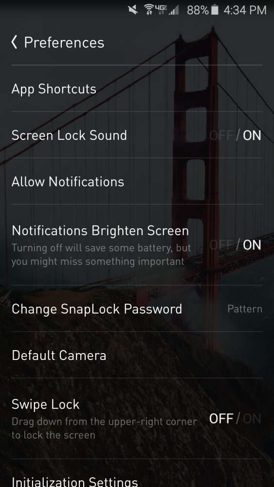 From the settings you can select to have a different wallpaper every day or use your own, toggle between showing the status bar or not, showing the battery percentage or not, and more. The app shortcuts can be customized to your liking or you can let Snaplock adjust the shortcuts based on your usage. You can also toggle between having the display light up with each new notification.