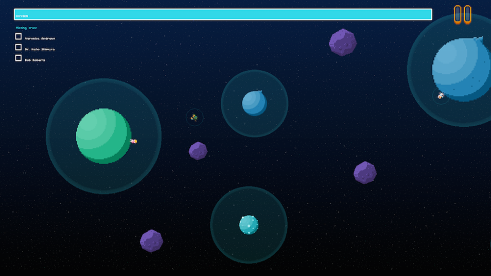 To scoop up your team members, you press on two sides of the display, powering your jetpack. Once you are away from a planet’s gravitational influence, you can steer yourself using maneuvering thrusters. Once on a planet, simply walk around to collect your crew, then launch yourself into the Sun.