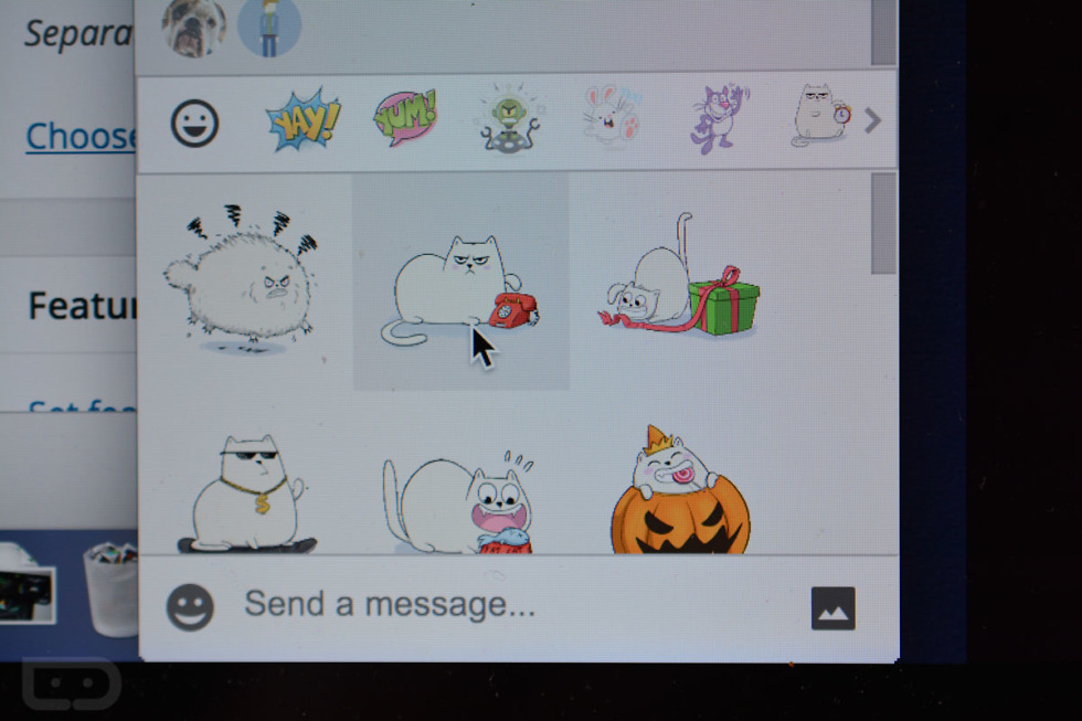 Your kitteh-filled life is close to being complete as of this moment. The Hangouts extension on Chrome now has access to stickers. Go get them.