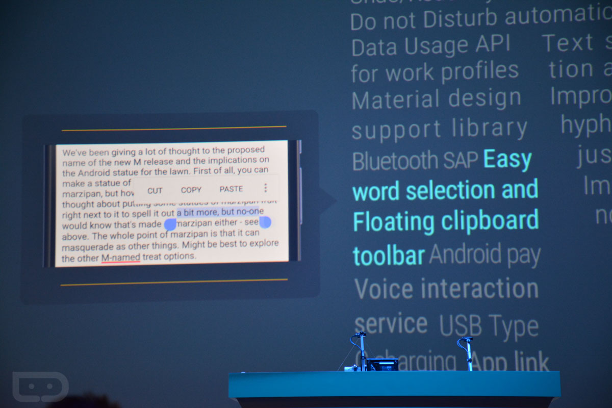 Google just announced the Android M Developer Preview and thanks to this image that was put up at the I/O keynote, we can see almost all of the new features included.