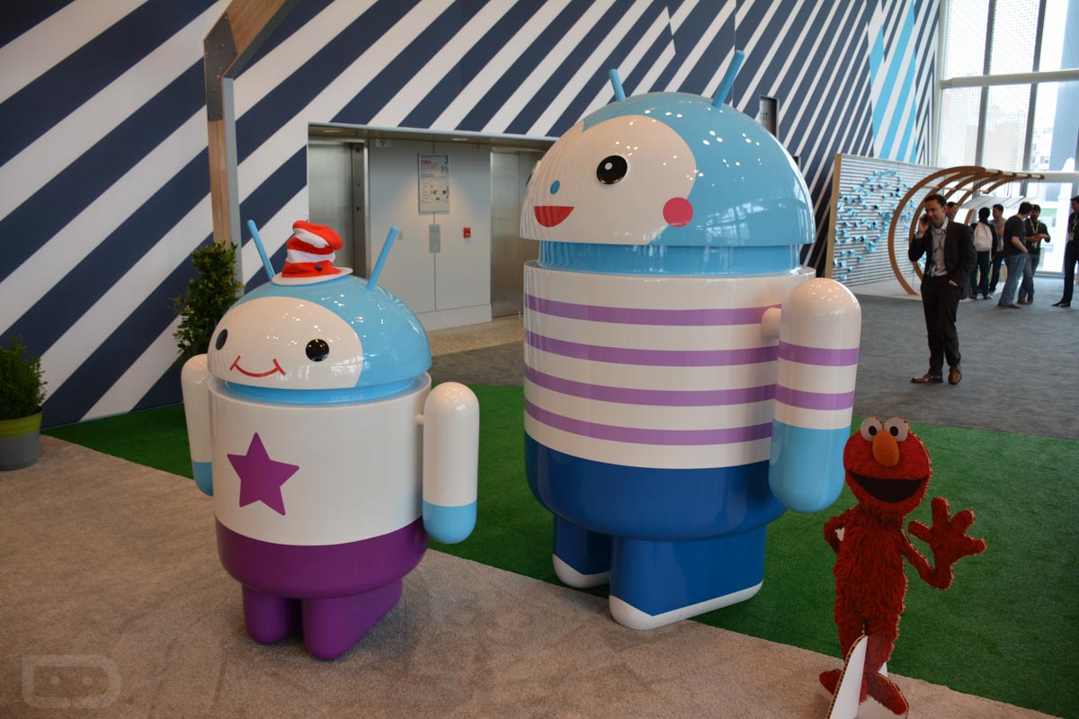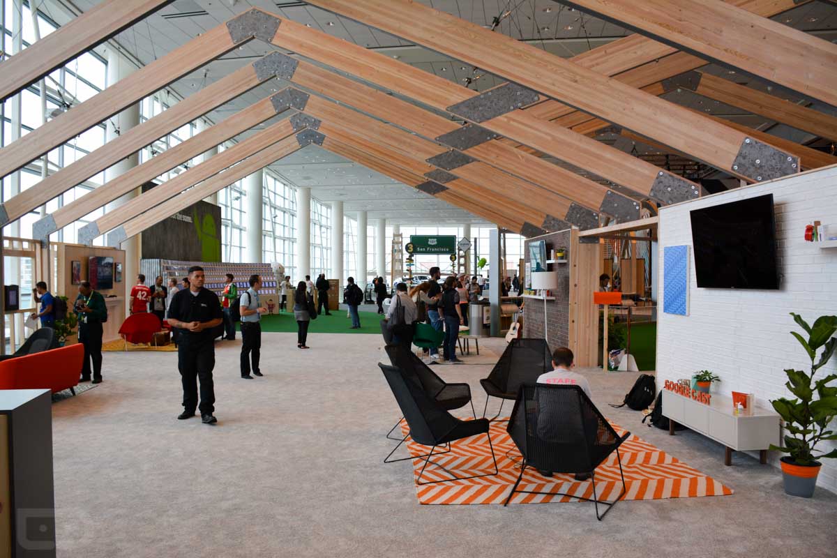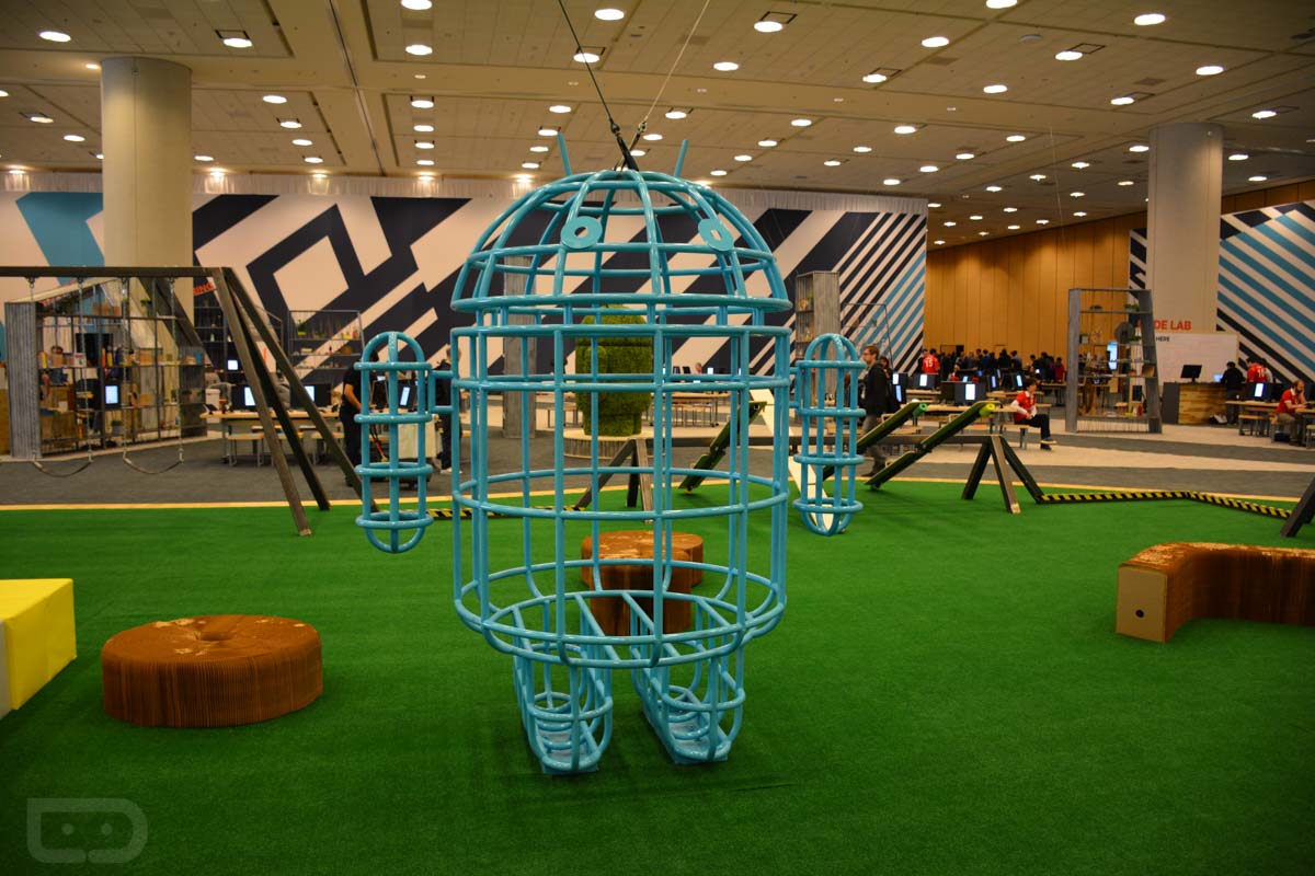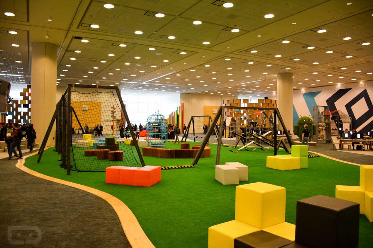 Google always does pretty creative things with the designs for its floor sets, and this year is no exception. In the pictures below, you will see bugdroids of all shapes and sizes, what it looks like when a few dozen developers are taking in the latest from a Googler, the cars that Google rolls in for Android Auto, all of the projects from Google’s ATAP, and even a massive playground, filled with swings, teeter totters, and video games.