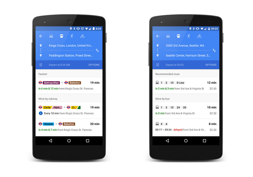 As for real-time transit info, Google unfortunately, did not specify which new metro areas would start to see it. They did mention that they are also working with 25+ new partners to make real-time transit info a possibility in the UK, Netherlands, Budapest, Chicago, San Francisco, and Seattle, though.