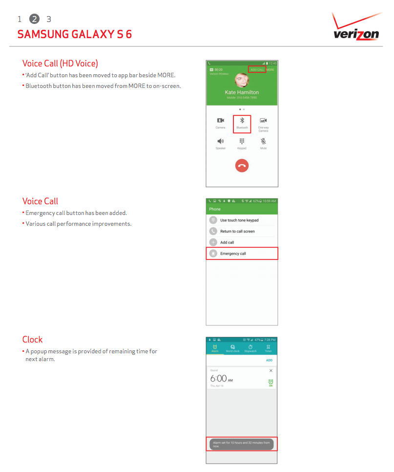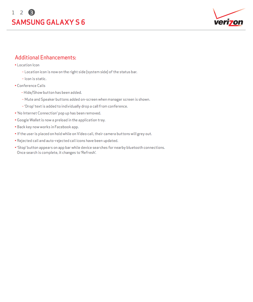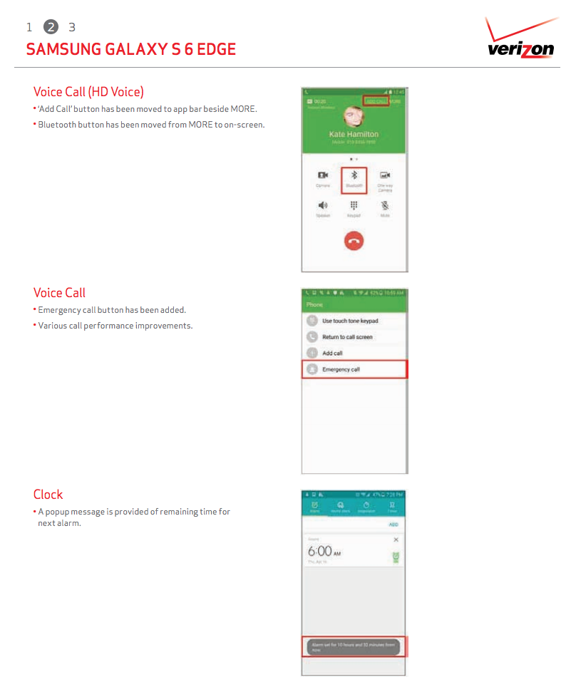 As for the bug fixes and tweaks, Verizon is moving buttons around in the HD Voice calling screen, Google Wallet now comes pre-loaded, and People Edge (GS6 Edge only) now has a visual cue on the home screen. The rest of the list of bug fixes can be found below for each phone.