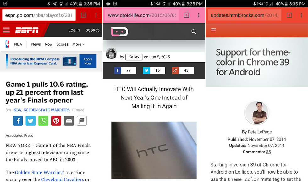 Back in Chrome Beta 39, Google introduced one of our favorite features to Chrome that was unfortunately, only available in select situations, and on select versions of Android. We are talking about colored toolbars, of course.