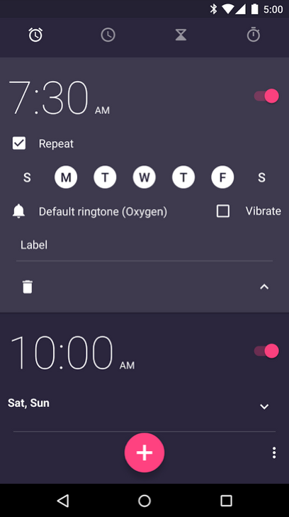 This Clock app has been updated regularly over the years as new version of Android have been introduced. It has always seemed like one of the first places Google goes to test new design ideas. With this Clock, you get the full Material Design treatment, like rippling touches, smooth transitions, floating buttons with subtle shadows, and cute little animations.