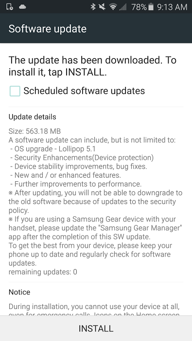 Samsung Galaxy S6 and Galaxy S6 Edge variants on Sprint are receiving an update to Android 5.1 this morning, according to Sprint support. The updates are quite large in size, hovering around 563MB for what we thought would have been a minor upgrade.