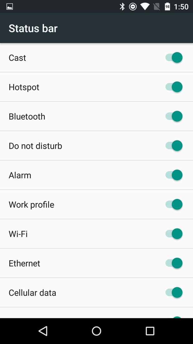 Where this gets really cool, is in the “Status bar” section. This area allows you to hide or show all of the icons that may show up in your status bar, from WiFi icons to do not disturb and alarm icons to the cellular data signal icon. Seriously, that annoying Bluetooth icon that you wish would go away even though you have Bluetooth enabled, can be turned off! How awesome is that?