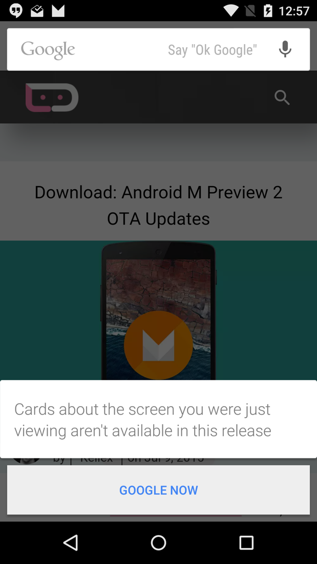 After that, well, you would think that you would have access to Google Now on Tap, but we aren’t able to get it to work just yet. A long-press on the home button in any screen still shows us the “Cards about the screen you were just viewing aren’t available in this release” message from Preview 1.