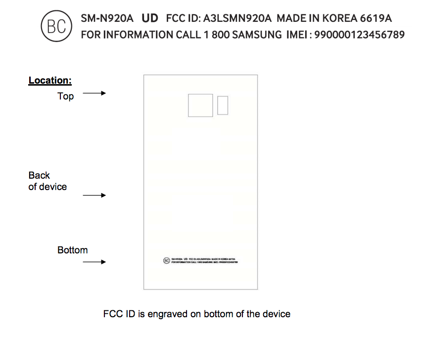 If that info wasn’t enough, take a look at this label location image of the SM-920, which is the Note 5.