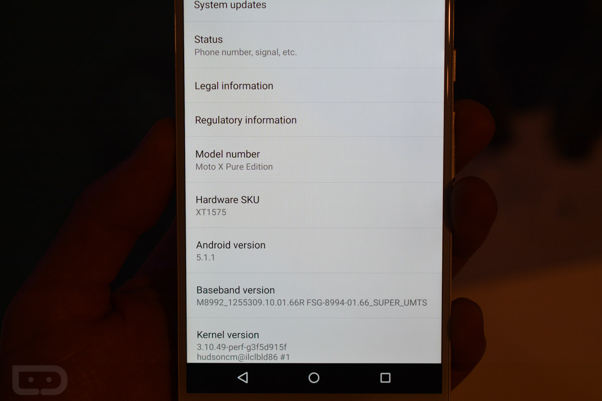 Finally, the image below shows you that the Moto X for the US is indeed just called the Moto X Pure Edition and carries a model number of XT1575. Because we might go insane without a “3rd gen” or year attached to it, we may start referring to it as the Moto X Pure Edition (2015). Or you could call it the Moto X Pure Edition (3rd gen). Whatever works for you.