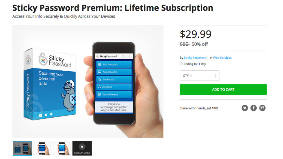 Time is running out to pick up a lifetime subscription to Sticky Password Manager for a discounted price on the DL Deals Store. Regularly priced at $60, your subscription will only cost $29.99, a solid 50% discount.