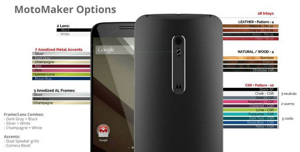The Moto X Pure Edition is set to launch in September here in the US, but if you want to get a head start on the many ways you can customize the device through Moto Maker, the below image can help.