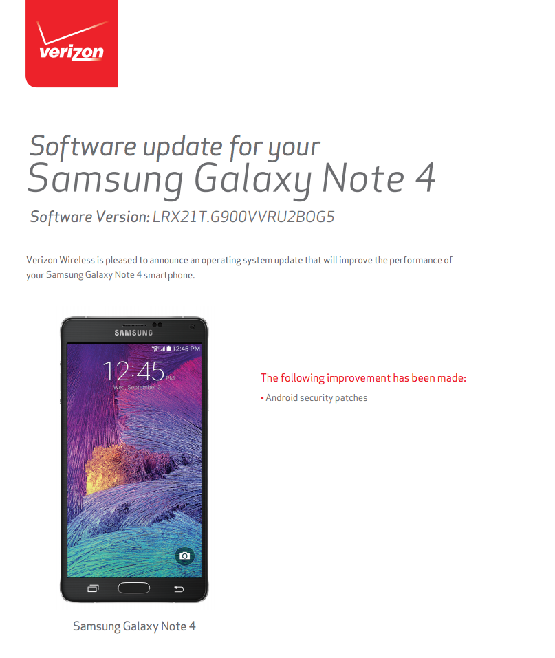 Update 2: Both the Note 4 and Galaxy S5 on Verizon got the update yesterday.