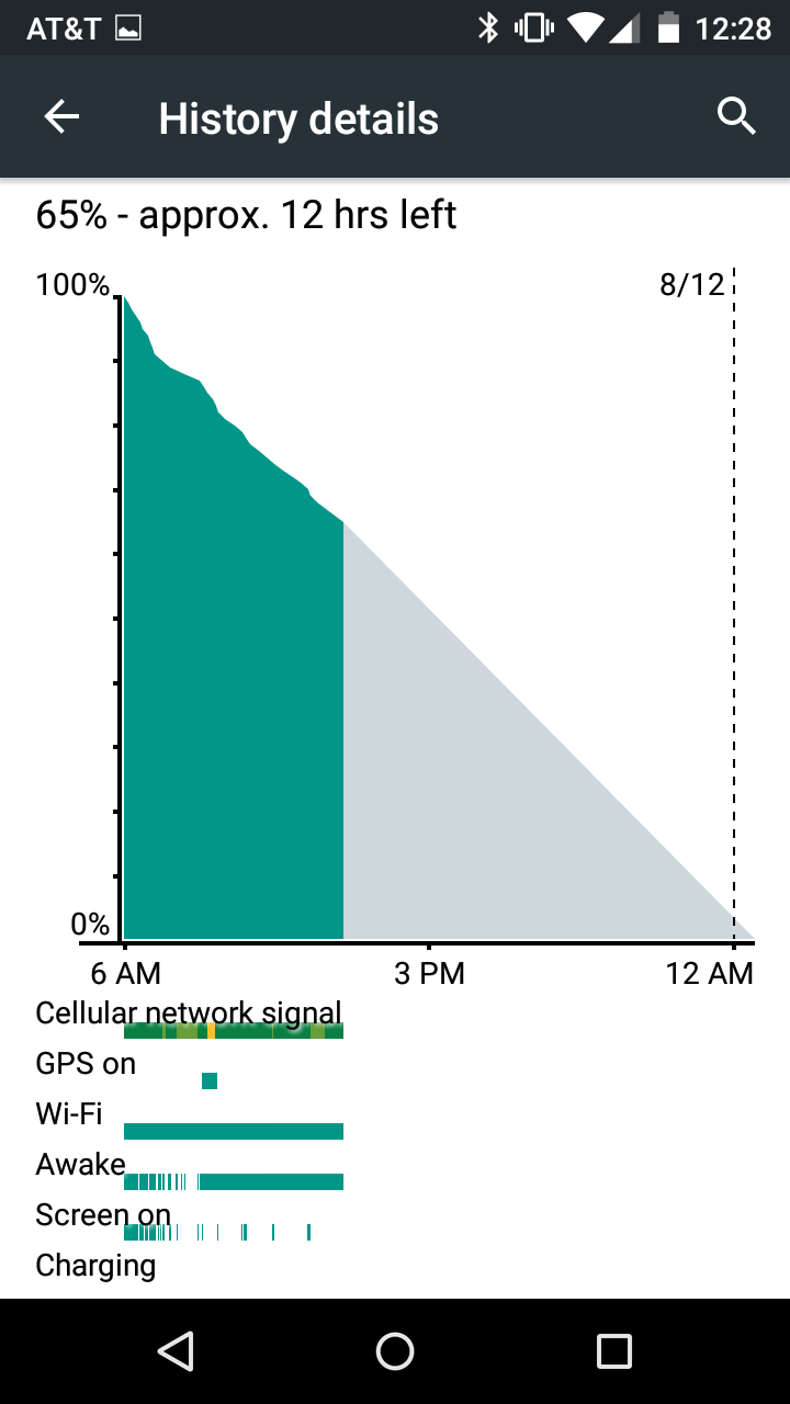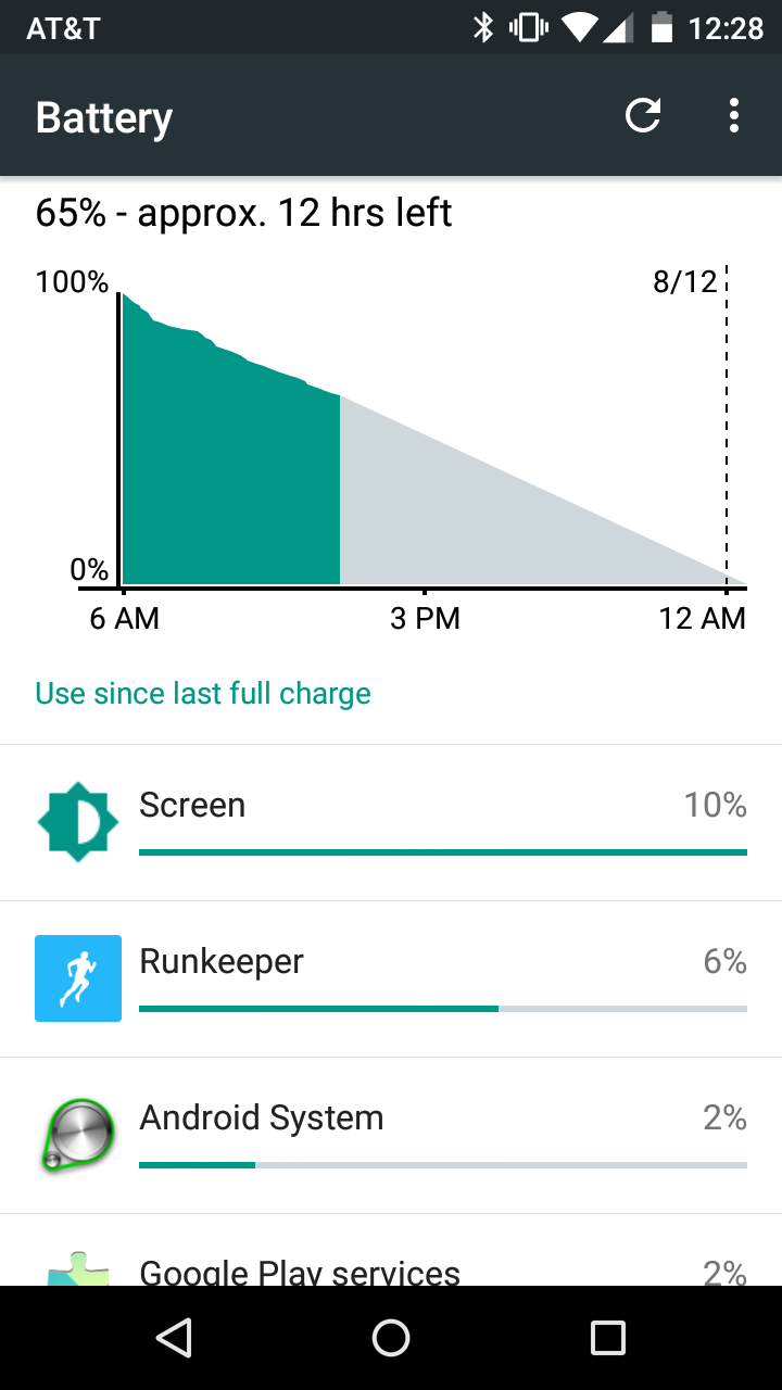 In fact, the standby time on this phone might be the craziest thing I’ve ever seen in a smartphone. I’m pretty sure that I turned this phone on for the first time after returning from NYC a couple of weeks back, charged it, connected to WiFi, and then didn’t touch it for 3 or 4 days, yet it still somehow had most of its battery left. Today, I woke up at around 5:45AM, grabbed the Moto G (with WiFi on), caught up on news, then went for a 30-minute run (using GPS the whole time), and am now sitting here at 12:30PM with almost 70% remaining (1.5 hours of screen on time). That’s insane! The Galaxy S6 would have asked me to recharge it at least once in that amount of time.