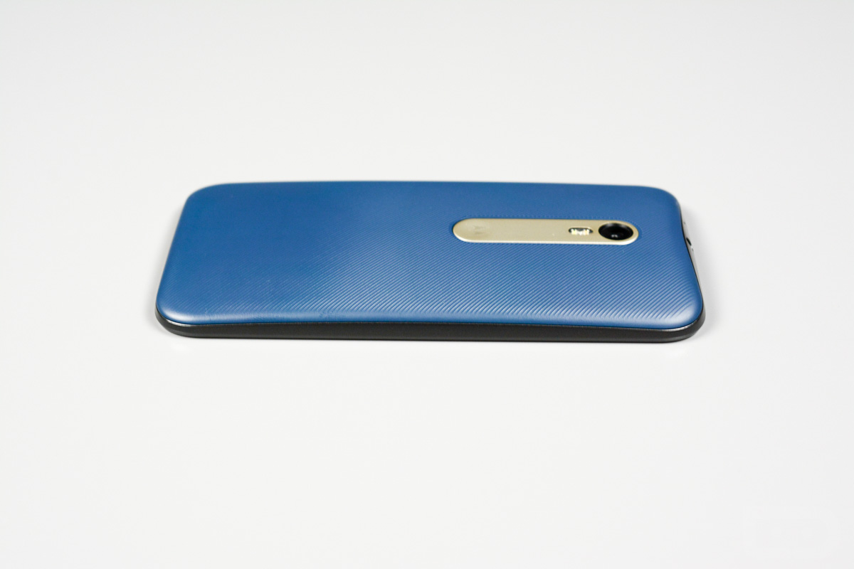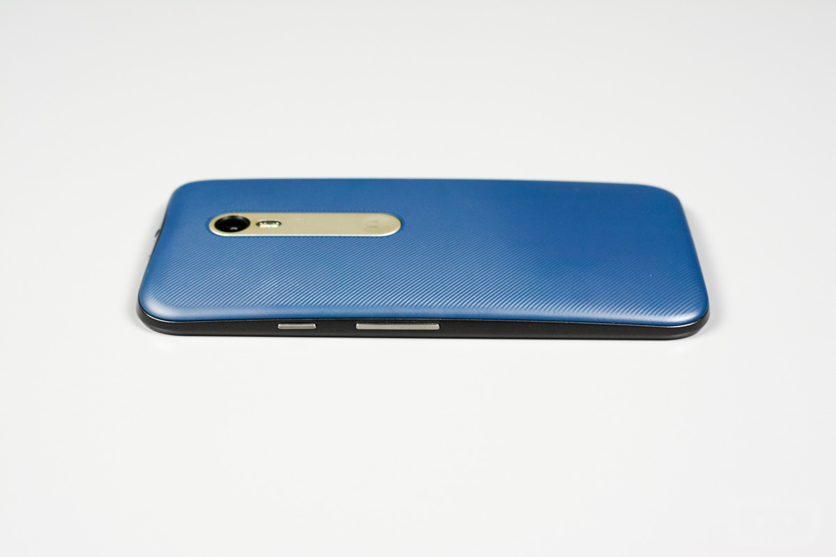 Holding this phone reminds me a lot of the original Moto X in that its curves melt into your palm, all areas of the screen are reachable with one handed use, and it isn’t so thin that it becomes difficult to hold. There is a slight texture to the (replaceable) back side, along with a somewhat sticky phone frame that both help it from slipping around in your hand. The power and volume button places are in their proper spots and not at all confusing. And the camera housing, with dimple, and flash add some much needed flair.