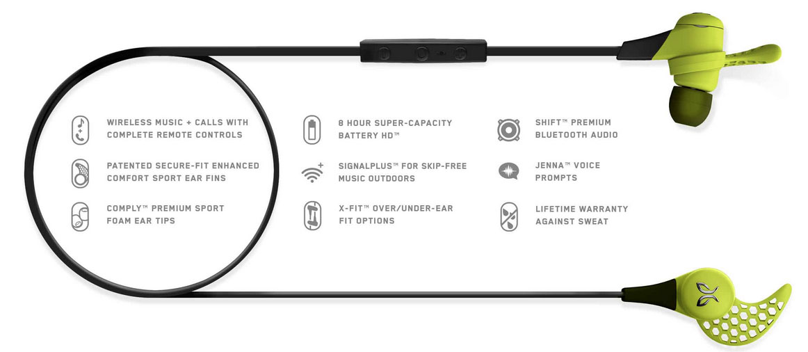 Update 2: Alright, so after some confusion over how the new Jaybird X2 differs from (or betters) the original Bluebuds X, we’ve had a chance to chat with Jaybird to find out. Basically, what you are looking at is a component revamping that modernizes everything and upgrades the quality. So even though the specs all look very similar on paper, the reality is that you are getting brand new parts for 2015 instead of parts made for 2013. Jaybird told me that the new battery can probably squeeze out more like 9 hours of life, but will most definitely hit that 8 hour mark. They also include redesigned ear fins that should be more comfortable. As we mentioned, they even included the Comply Sport tips, which are a $10+ upgrade.