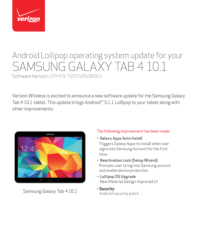 Verizon is pushing a handful of Android 5.1.1 updates this afternoon to the Samsung Galaxy S6, Galaxy S6 Edge, and Galaxy Tab 4 10.1. Those updates, as you might have guessed, also include “Android security patches” for Stagefright.
