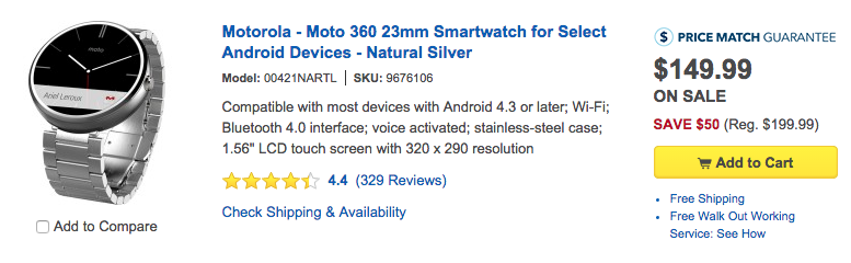 A few weeks ago, Motorola and its retail partners dropped the Moto 360 to its lowest price yet at $149 for leather band models and $199 for metal band models. Today, Best Buy took it a step further and dropped metal band versions to $149 as well. That’s a pretty substantial discount, especially when you consider the fact that Motorola is still charging $199 for metal variants.