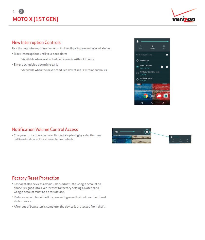 The official changelog documents are included below, but they mention new additions like UI improvements, Android security improvements (Stagefright patch), new interruption controls, changes to volume settings, and factory reset protection.