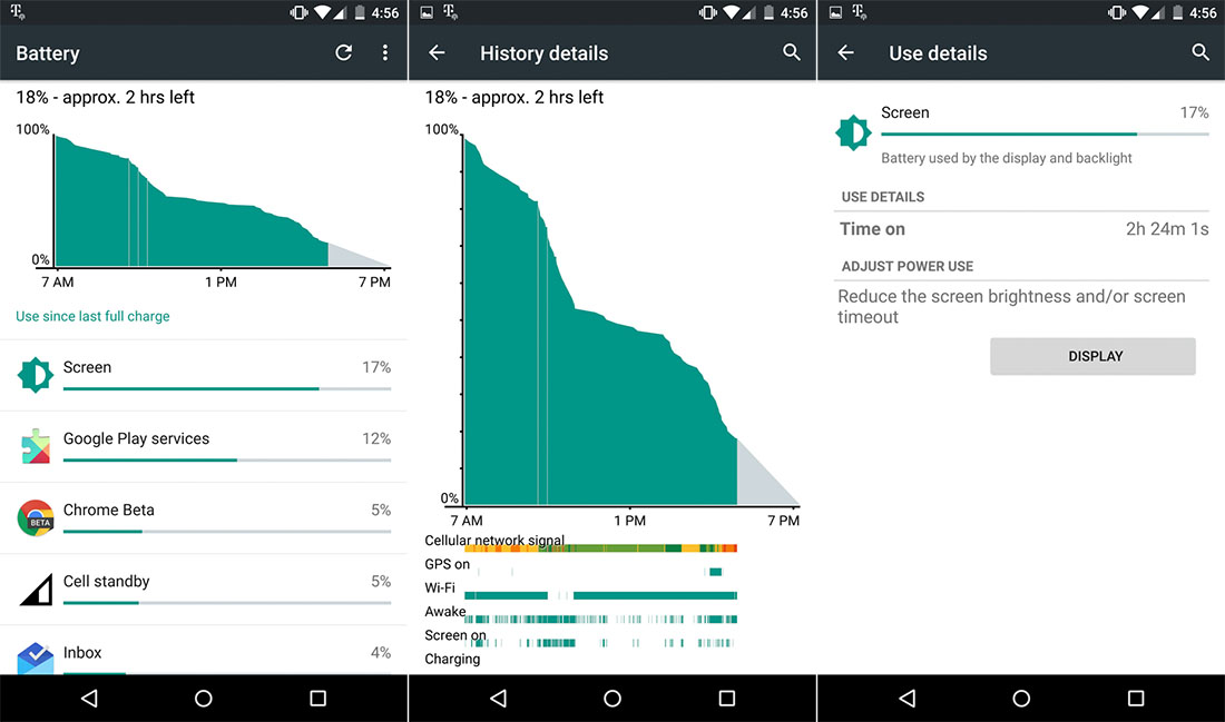 I tend to live in a black hole of signal death no matter which carrier I go with (I tested Verizon, AT&T, and T-Mobile SIMs in this phone), so you have to understand that the numbers I just stated are actually quite good. If I attempted to get 3 hours of screen on time with a Galaxy S6 at my house, it would be dead and off by noon. So the fact that this phone is getting me through a day and into the evening is about all I can ask for.
