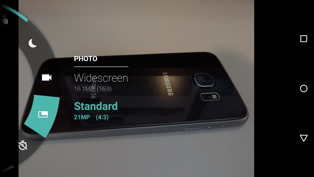 The camera shoots out of the box in widescreen 16MP shots, but I flipped mine over to the full 21MP 4:3 resolution. It also has 720p slow-mo video recording, 4K video recording, night mode for stills, auto-HDR (that I left on), panorama mode, and the option to save everything to an SD card (which I did). All of these options are handled through a slideout menu that is accessed from the left side.