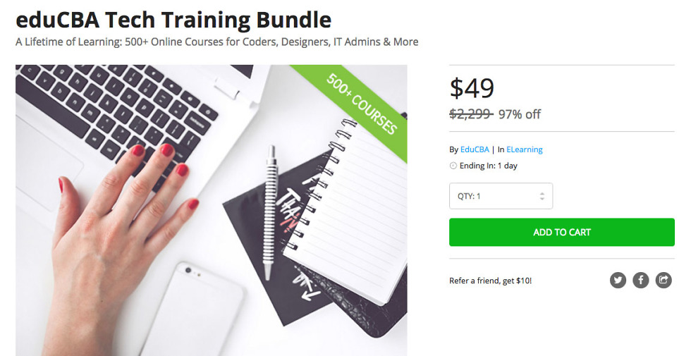 Over on the DL Deals store, developers of any level can further their education by picking up the eduCBA Tech Training Bundle, which includes lifetime access to eduCBA’s growing library of tech and developer courses. There are over 500 courses currently, but there will be even more in the future.