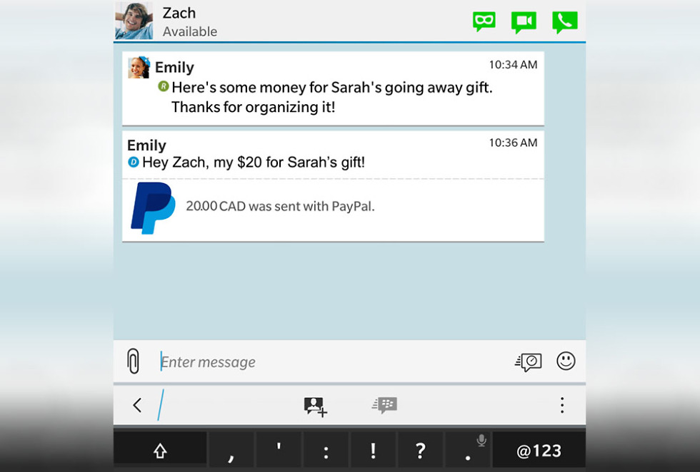 - Send money to BBM contacts within your BBM conversations using PayPal account integration