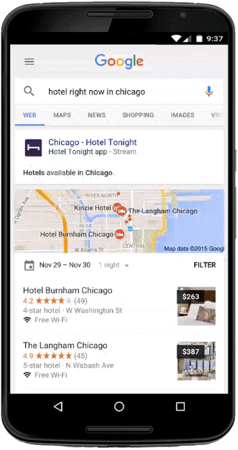 Google makes it sound like we are in the early, experimental stages of this new feature in Google Search, so you won’t find a whole bunch of apps doing this just yet. For now, they are working with HoteTonight, Chimani, Daily Horoscope, and New York Subway.