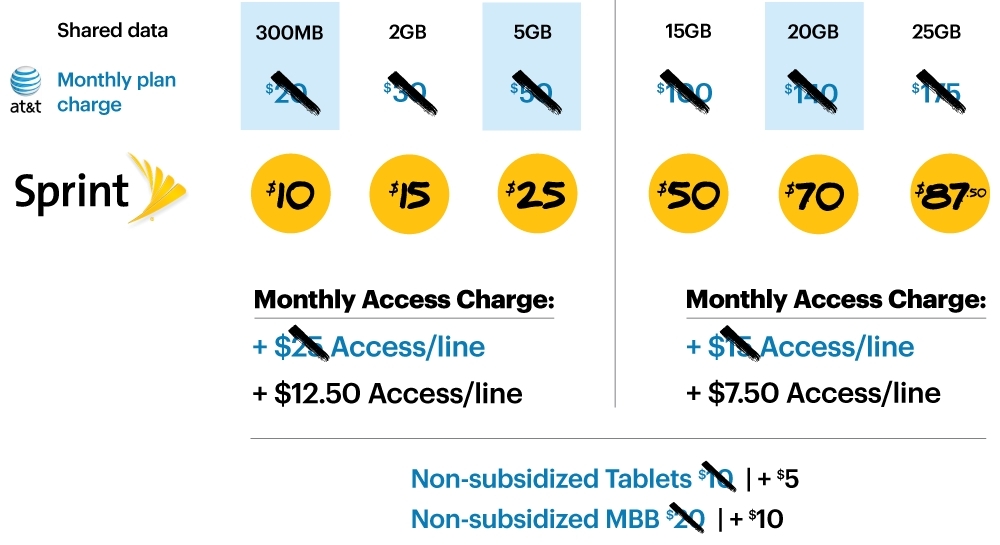 Sprint is going to cut 50% off the plans that your carrier currently offers if you port your number over to them. That includes 50% cuts on both data buckets and the monthly access/line charges. Sprint is also willing to pay up to $650 for anyone who switches, meaning they will cover your early termination fees up to $650 per line.